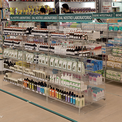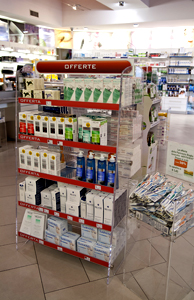 A richiesta è possibile personalizzare l’espositore con vinili adesivi removibili dedicati alla comunicazione di prodotti e promozioni esposte.