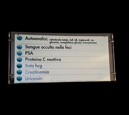 Tasche in plexiglass per la comunicazione di Servizi, Eventi e Promozioni, comprensive di kit morsetti per il fissaggio su astine o cavetti. Permettono un semplice e rapido aggiornamento della comunicazione mediante poster.